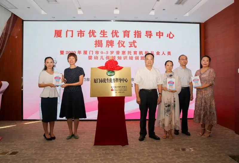 ▲揭牌仪式上,厦门市计生协向6家托育机构以及妇幼保健院赠送了一批《育儿宝典》揭牌仪式后,厦门市卫生健康委员会、计生协、妇幼保健院联合举办2020年厦门市0-3岁普惠托育机构从业人员婴幼儿保健知识培训班。