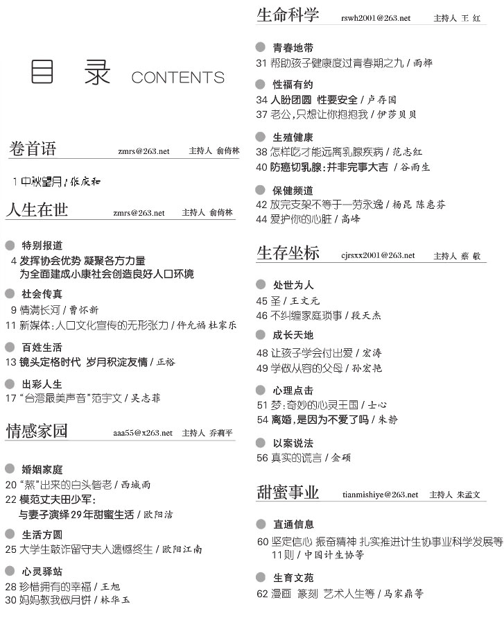 贴近实际、贴近生活、贴近群众,着力宣传人口计划生育基本国策。融知识性、趣味性、可读性为一体,提供生育、生产、生活服务。探索生命奥秘,关注生存环境,关注生命质量,倡导文明生活,与人们共创幸福美好的人生。