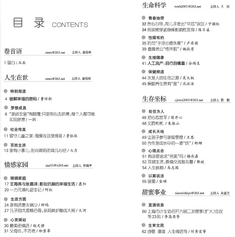 贴近实际、贴近生活、贴近群众,着力宣传人口计划生育基本国策。融知识性、趣味性、可读性为一体,提供生育、生产、生活服务。探索生命奥秘,关注生存环境,关注生命质量,倡导文明生活,与人们共创幸福美好的人生。