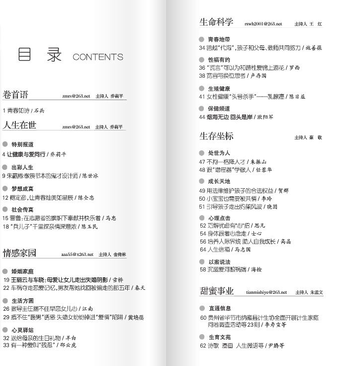 贴近实际、贴近生活、贴近群众,着力宣传人口计划生育基本国策。融知识性、趣味性、可读性为一体,提供生育、生产、生活服务。探索生命奥秘,关注生存环境,关注生命质量,倡导文明生活,与人们共创幸福美好的人生。